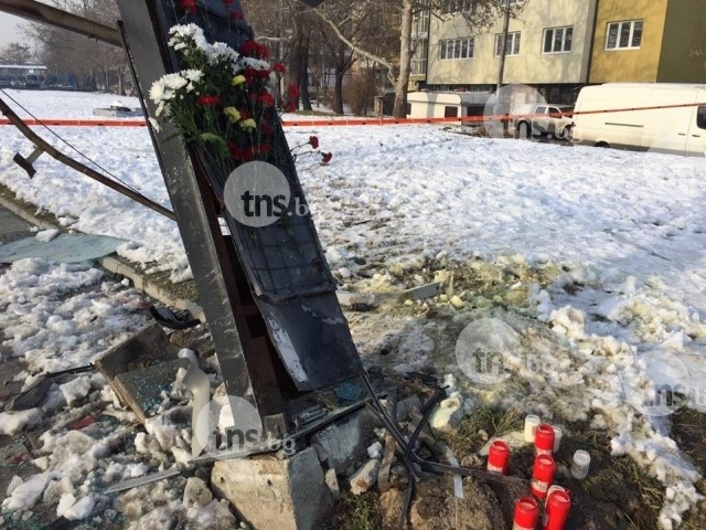 Множество свещи са поставени в основата на билборда, в който автомобилът, управляван от Боян, се заби снощи. За самият билборд пък са закрепени букети с цветя, съобщава TNS.bg.