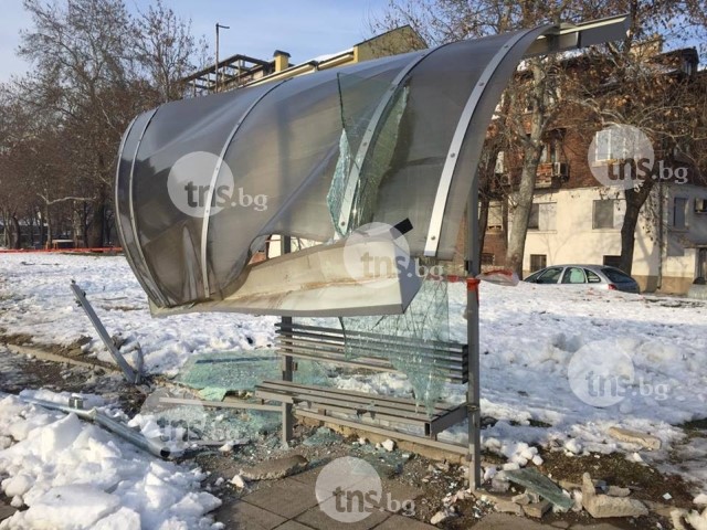 Силата, с която автомобилът е минал оттам, е била толкова голяма, че на парчета е разбит дори бетонния кош за боклук.