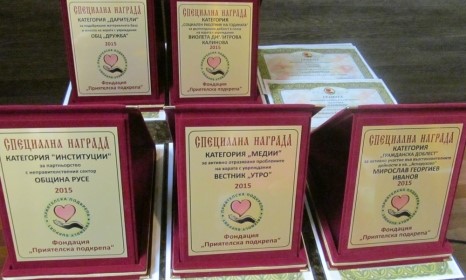 Фондация „Приятелска подкрепа“ отбеляза 10-тата годишнина от създаването на защитеното жилище в Русе с церемония в Гранд хотел „Рига“, на която бяха раздадени пет награди. Отличията бяха в категории „Иституции“, „Медии“, „Гражданска доблест“, „Дарители“ и „Социален работник на годината“.