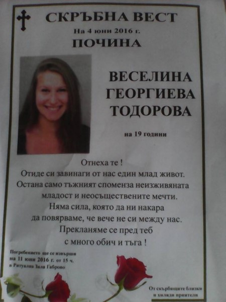 Бившият приятел на убитата Веселина Тодорова от Габрово е публикувал ужасяваща снимка на профила си във Фейсбук.