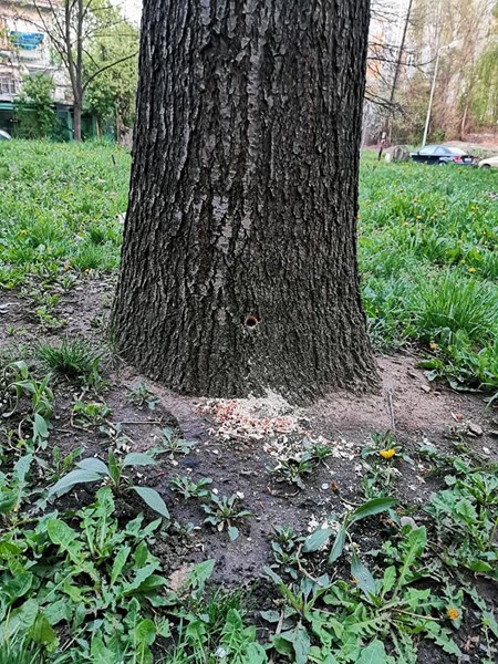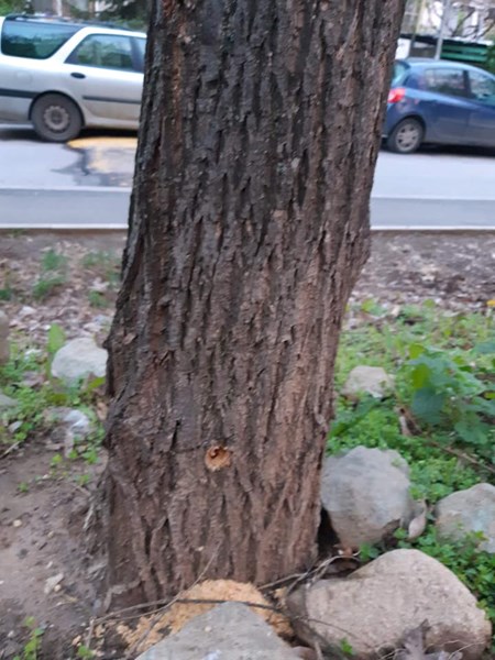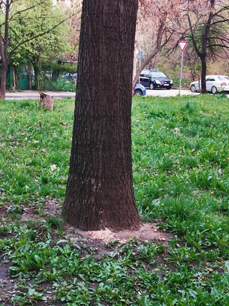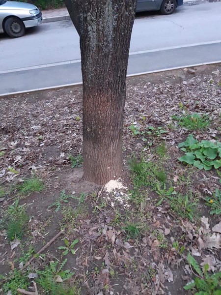 Възмутена жена е публикувала в социалната мрежа снимки на дървета, на които пробиват дупки, през които им сипват нафта, за да ги убият. Това се правело за да може да получат разрешение за строеж.