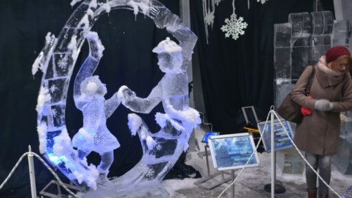 Руслан Коровков от Русия и Ирина Тафлевская от Украйна, които са куратори на фестивала, изваяха принцеса Елза и част от леден замък, в който са вплетени леден бар, ледено кресло и ледена камина.