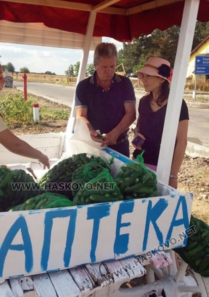 Атракционът се намира на входа на хасковското село Книжовник и събира погледите на десетки пътници, които нерядко стават и потенциални клиенти на пътната търговия.Един от случайните минувачи беше общинският съветник от Стамболово Господин Господинов, придружаван от чаровната Ралица. Те признаха, че са впечатлени от реставрираното превозно средство, превърнато в аптека и решили да спрат. И се запасиха с краставички за салата и буркани, пише haskovo.net.