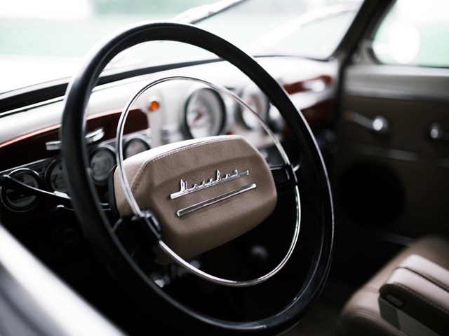 Салонът изглежда доста приятно. Воланът, най-вероятно от Москвич-2140, е украсен с хромиран пръстен, а централната част е тапицирана с кожа. Монтирана е и модерна озвучителна уредба с входове USB и AUX.