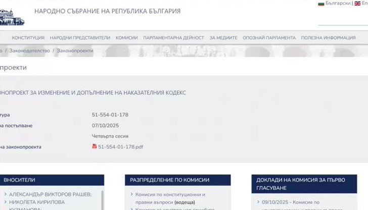 Законопроектът на партия "Има такъв народ", който предвижда наказания със затвор за разпространение на лична информация без съгласие, все още не е оттеглен от деловодството на Народното събрание. Това става ясно от официалния сайт на парламента, въпреки уверенията на политическите лидери, че мярката ще бъде отменена.