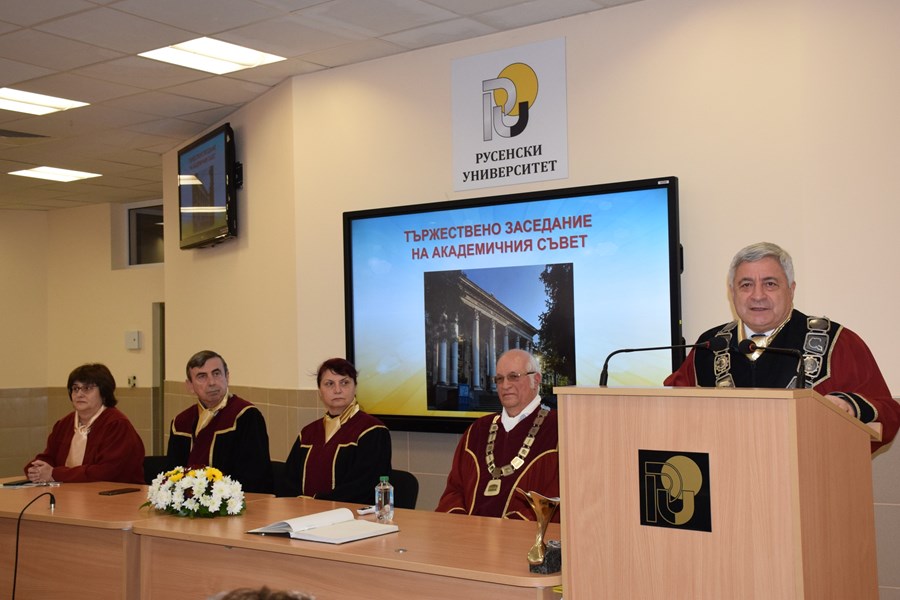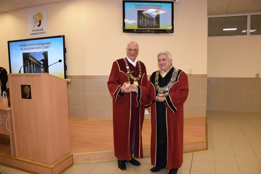 Днес в Русенския университет се проведе церемония по присъждане на почетната титла „Доктор хонорис кауза“ на Русенския университет на проф. д-р инж. Ангел Смрикаров.