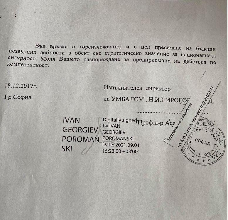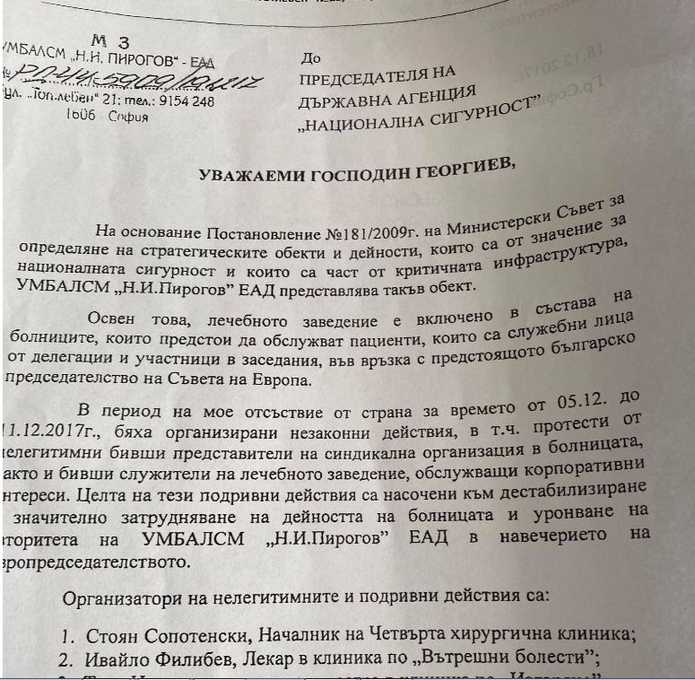 Здравният сайт e-zdravey публикува скандално писмо от проф. Асен Балтов до ДАНС срещу негови колеги от УМБАЛСМ "Пирогов".