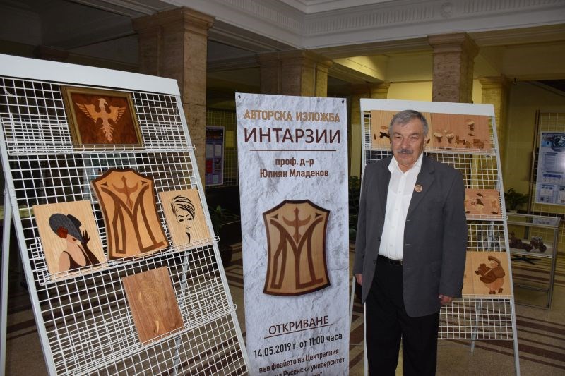 Днес, 14 май 2019г. (вторник), проф. д-р Юлиян Младенов представи във фоайето на Русенския университет за пети пореден път своите авторски интарзии.