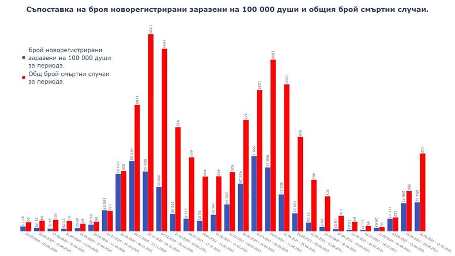Днес има карта на регистрираните случаи и на смъртността. Виждате какво става в последните дни - броят на регистрираните случаи почти не расте, а смъртността се увеличава доста. Изводът е, че може и да сте със симптоми и да не се регистрирате като болен, но математиката ще хване този процес.