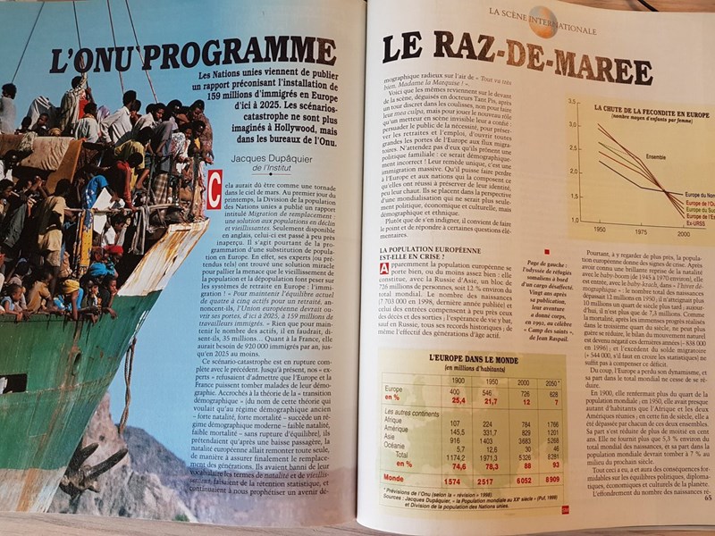 Програма на ООН: През април 2000 г., един доклад препоръчва инсталиране на 159 милиона имигранти в Европа до 2025 г.