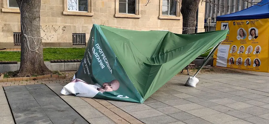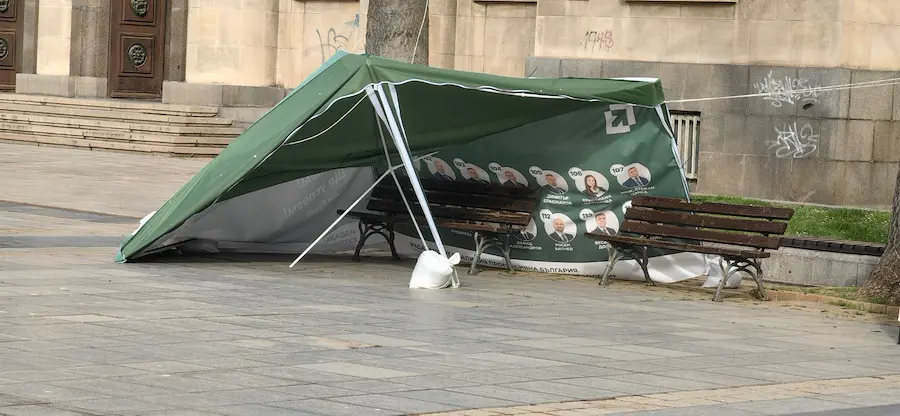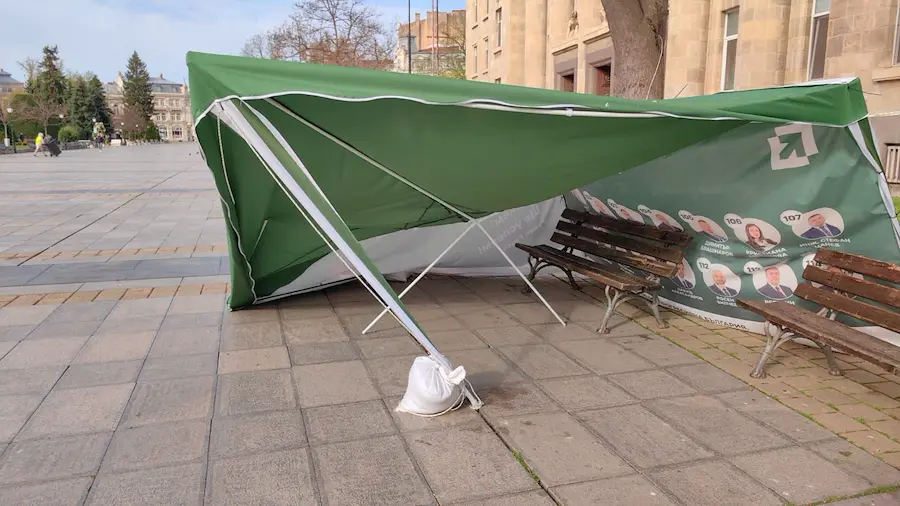 Неизвестни срязаха въжетата и събориха предизборната шатра на коалицията в Русе