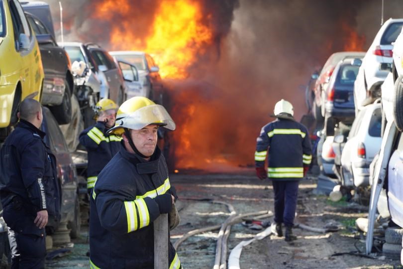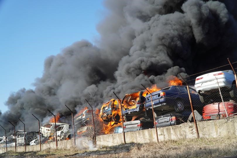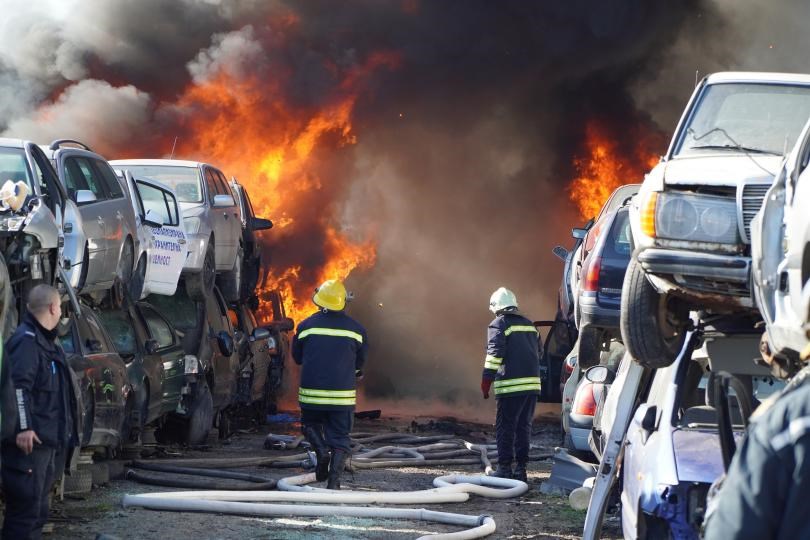 Припомняме, днес към 13:00 часа избухна голям пожар в автоморга в Хасково. По първоначални данни от огнената стихия са засегнати над 100 автомобила, а бедствието може да е възникнало при рязане на кола за скраб. Гъст черен дим се бе разпрострял над целия град, а пожара бе гасен от 4 противопожарни екипа - 3 от Хасково и един от Харманли.