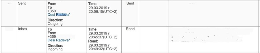 Съобщенията са част от експертиза на мобилен телефон, ползван от П.Б.
