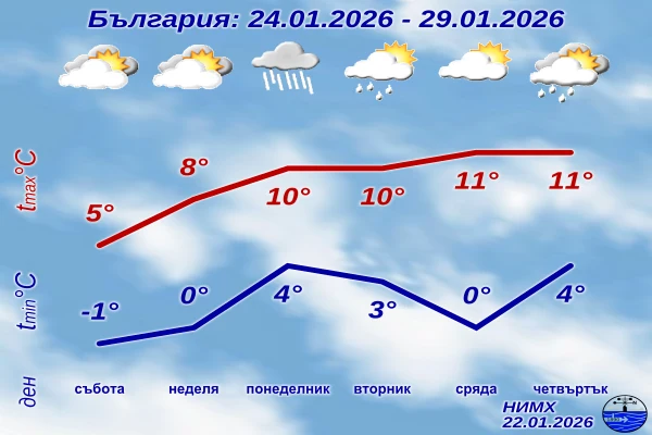 Предстоящите почивни дни (24 и 25 януари) ще бъдат преходни, като страната ще бъде разделена на две зони. В равнините и котловините времето ще се задържи мъгливо и по-хладно, създавайки идеални условия за натрупване на фини прахови частици. В същото време, в планините и районите с прокъсване на облачността, температурите ще започнат да се повишават.