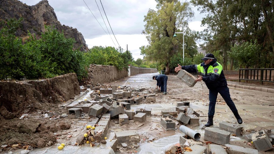 Според испанската метеорологична служба това са едни от най-проливните дъждове в историята на Испания. Бурята преминава днес и утре над средиземноморските крайбрежни региони на Валенсия, Аликанте и Мурсия.