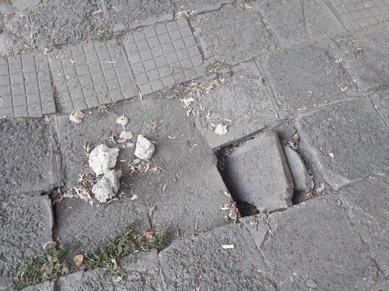 Никой не взема мерки да го ремонтира. След две седмици ще започне учебната година на децата, които преминават по този тротоар и като се случи лошото тогава ли ще се обърне внимание на тази огромна дупка?
