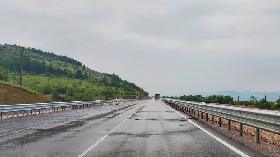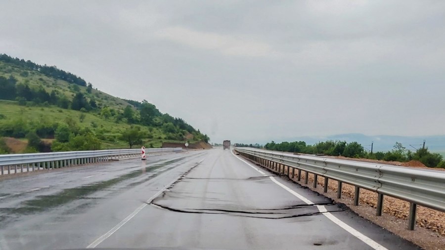 Пропаднала е настилката на новопостроен участък от автомагистрала „Европа” при Драгоман, съобщи сайтът balkanec.bg.