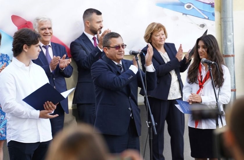 След това министър Пенов откри новата учебна година в 32-ро средно училище „Свети Климент Охридски“. Той удари първия звънец за децата и им пожела успех.