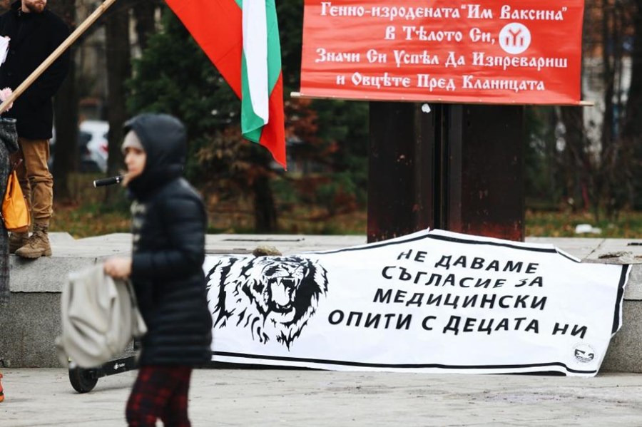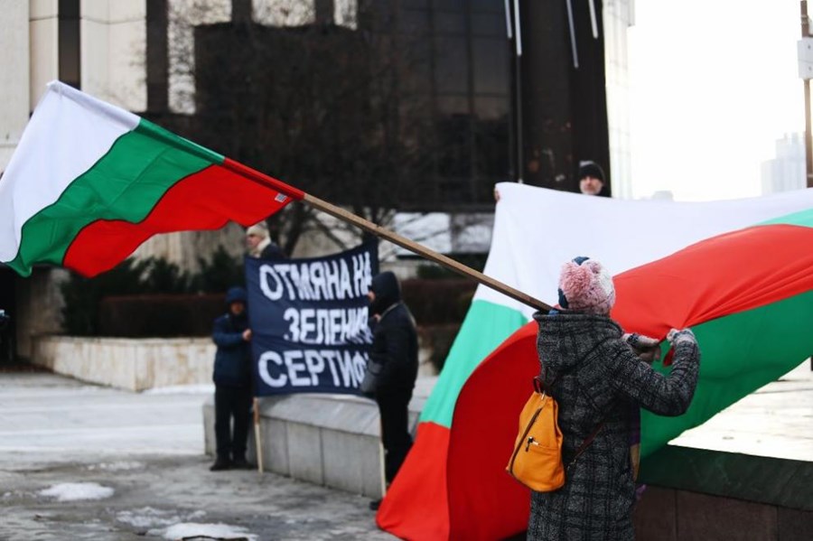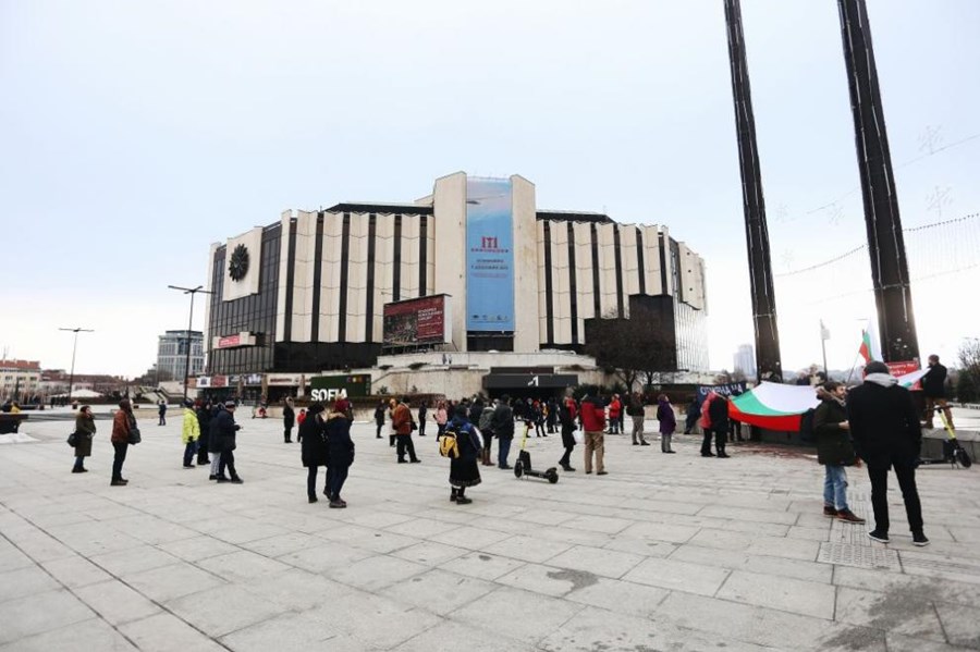 Пред пилоните на НДК се събраха хора на протест срещу зеления сертификат.