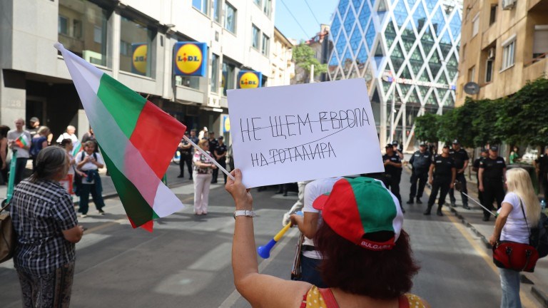 Протест срещу влизането на България в еврозоната се проведе в центъра на София днес, 26 юни. Недоволните се събраха пред сградата на Европейската комисия, която беше охранявана от полиция и служители на Дирекция "Жандармерия", съобщи БТА.