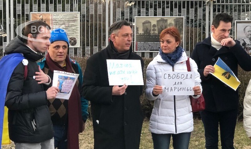 Протест в защита на журналистката Марина Овсянникова, който издигна плакат в студиото на предаването „Время“ по руската държавна телевизия Първи канал, се проведе пред посолството на Руската федерация у нас, предаде БГНЕС.