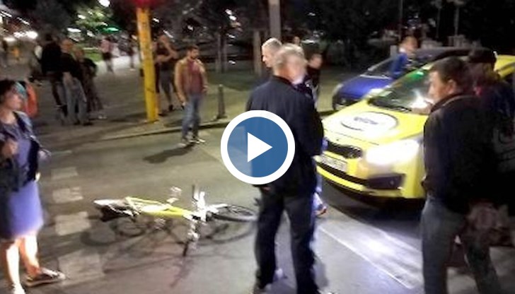 На мястото става ясно, че такси е спряло, около него има суматоха, явно шофьорът е искал да премине и е възникнал конфликт насред столична улица. На мястото имаше полиция. За щастие, велосипедистът е без наранявания.