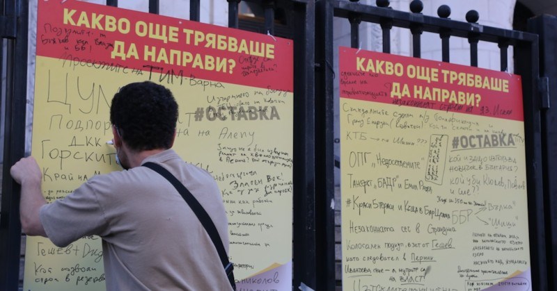Протестиращи оставят послания и призиви за оставка към главния прокурор Иван Гешев на специално монтирани за целта табла пред Съдебната палата, предаде репортер на БГНЕС.