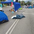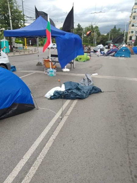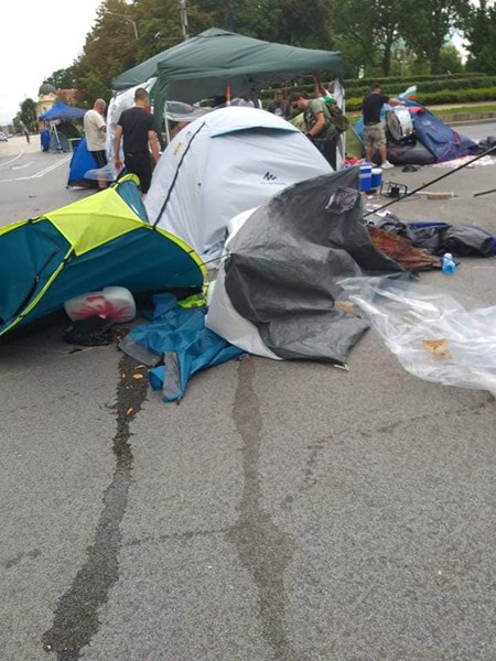 Протестиращите не можаха да удържат палатките от силния вятър.