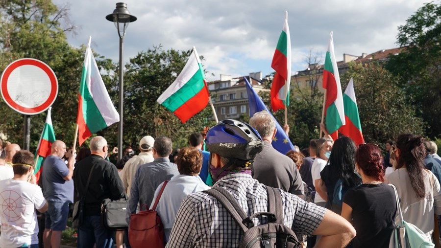 Протестиращи се събраха пред сградата на Министерство на вътрешните работи (МВР) в центъра на София тази вечер, за да поискат оставката на вътрешния министър Младен Маринов.