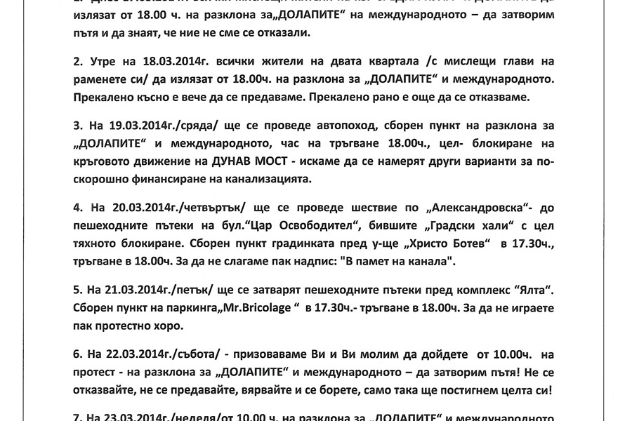 Днес, 17-ти март от 18:00 часа, се планира жителите на двата квартала да излязат на разклона за Долапите на международното и да затворят пътя.