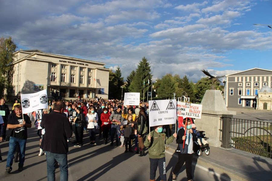 След това с плакати „Спрете да ни тровите”, „Искаме чист въздух”, с маски на лицата и с използване на свирки протестиращите потеглиха към кръговото кръстовище. Целта бе да се блокира движението, на практика обаче това не се случи, тъй като предварително полицията бе затворила подходите към кръстовището и на него за десетина минути се разположиха единствено хората от митинга. Там прозвуча призивът на свещеника Георги Михнев от Разград да стартира инициатива на всеки потенциален замърсител на въздух, вода и почва да бъде поставен стационарен уред за измерване в реално време на въздействието върху околната среда.