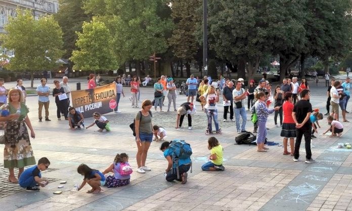 Протестиращи за чист въздух в Русе отправиха послания с тебешир
