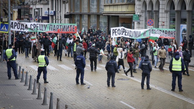 Най-големият от тях започна около 15ч. на пл. „Княз Ал. Батенберг” и е под формата на шествие. Той е под надслов „Смяна на системата”. Демонстрантите настояват за оставка на кабинета и промяна на политическата система.