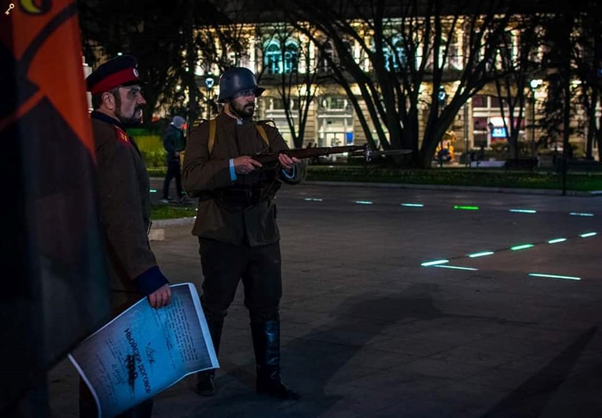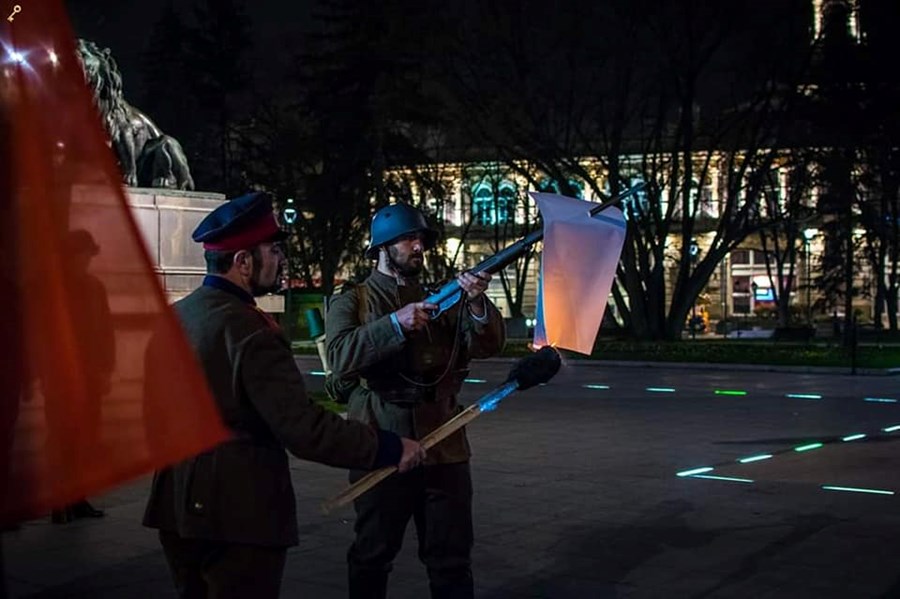 Със запалени факли участниците, предвождани от младежи със старинни военни униформи и пушки, потеглиха от паметника на Стефан Караджа и по централната улица “Александровска” стигнаха до финалната си точка – Паметника на свободата.