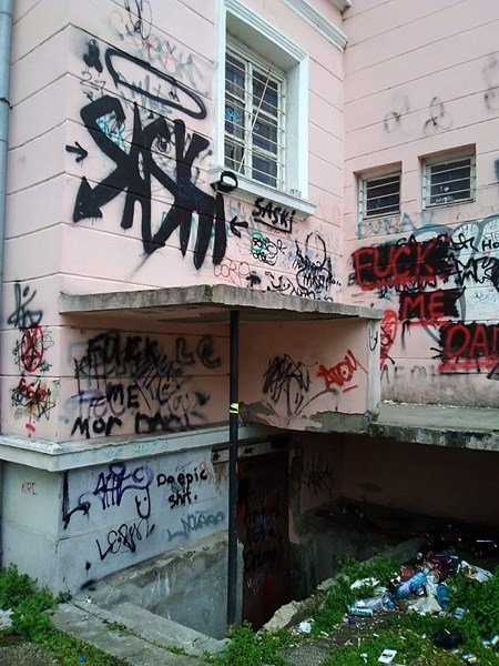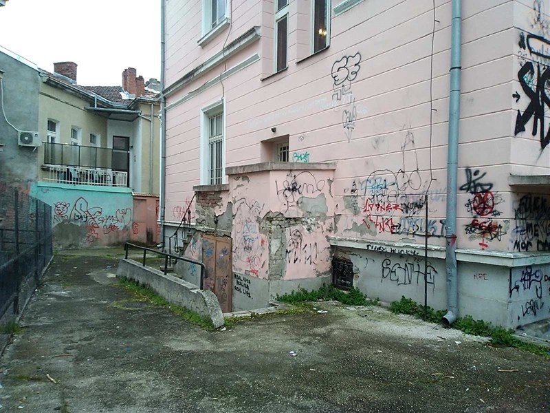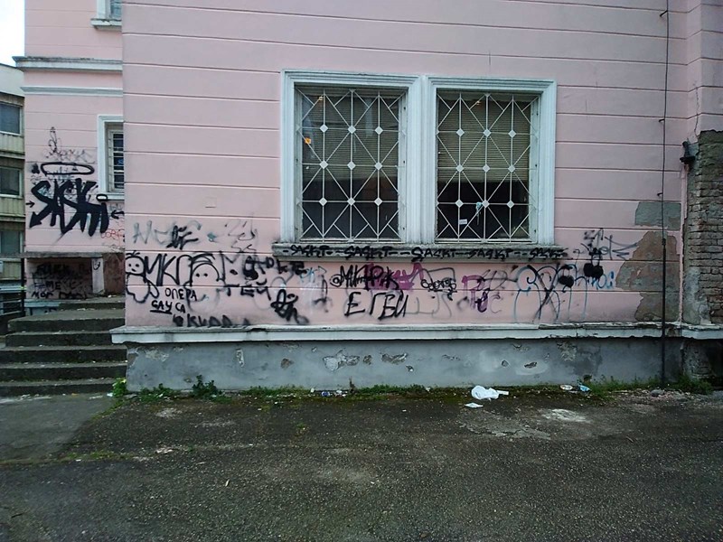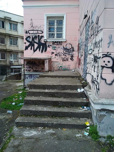 Ето какво ни пише той: „Живея в кооперация, споделяща общ двор с Обреден дом, гр. Русе. От известно време група младежи всяка вечер се събира в двора и замърсяват общото пространство и рушат фасадата на Обреден дом с графити и по друг начин, въпреки че мястото е оградено и многократно им е казвано, че това е частен двор, в който не могат да влизат. Преди известно време дори бяха подпалили гаража на една от съседките. Моля да вземете незабавни мерки. Изпращам снимки за онагледяване на положението“.