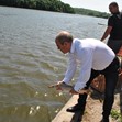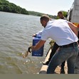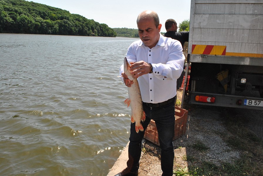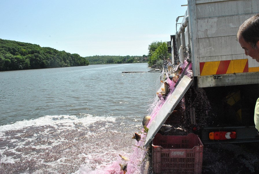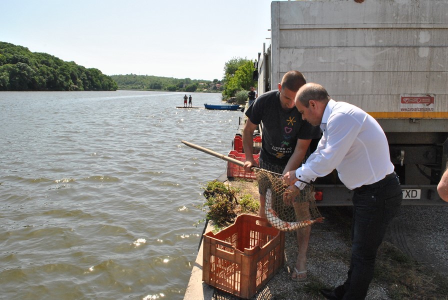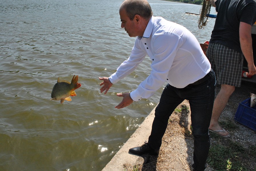 Първата риба, която кметът Пламен Стоилов пусна в езерото, беше щука. След това градоначалникът и секретарят на Общината г-н Димитър Генков пуснаха в езерото няколко едри шарана. На зарибяването днес, в района на Гребната база, присъства и зам.-кметът Даниела Шилкова.