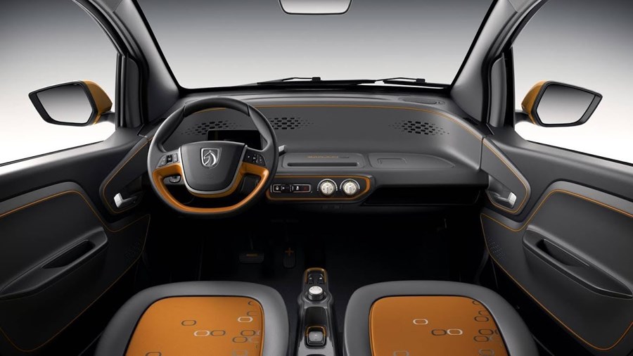 Двуместният E100 има 7-инчов сензорен екран с безжична свързаност. Списъкът от опции не е много дълъг, но купувачите на топ-варианта Zhixiang разполагат още с безключов достъп и по-добър филтър на климатика.