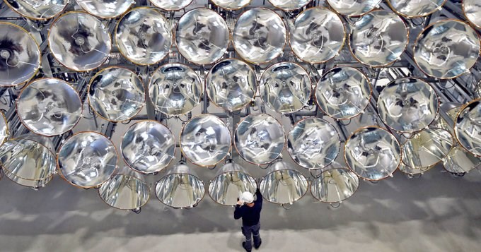 Експериментът "Синлайт" в град Юлих, на около 30 километра западно от Кьолн, се състои 149 огромни ксенонови прожектора, каквито обикновено се използват във филмовата индустрия за симулиране на естествената слънчева светлина. Като ги фокусират върху място с размери 20 см х 20 см, учените от Германския авиокосмически център се надяват да произведат еквивалент на 10 000 пъти повече слънчева енергия, отколкото би стигнала до него при обикновени условия, предаде БТА.