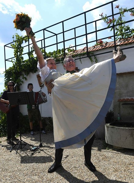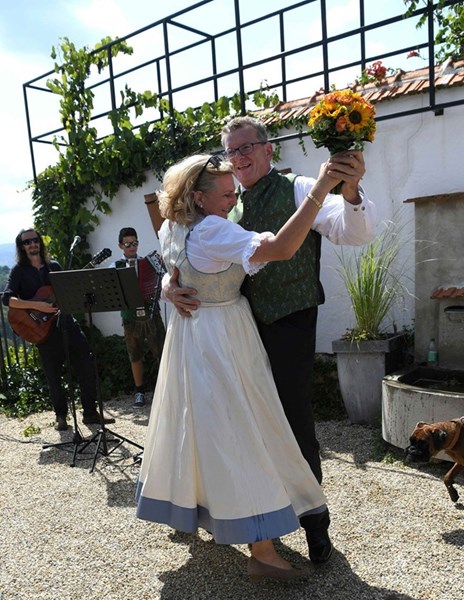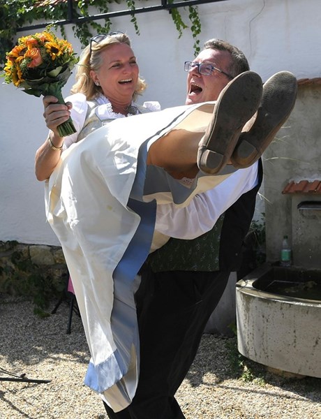 Самолетът на Путин кацна на летището на град Грац, откъдето хеликоптер трябваше да го заведе до имението, където протича сватбената церемония. В последния момент обаче президентът предпочете да стигне дотам с автомобил, което наложи да бъде закрито шосето, водещо към Гамлиц. Веднага след пристигането на брачното тържество той поднесе букет цветя на булката и сърдечно я поздрави.