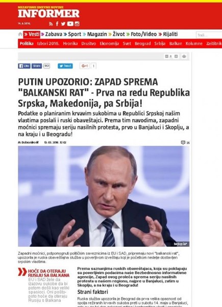В материала се казва, че ЦРУ и МИ6 имат агенти, които подготвят масови протести в Република Сръбска (Босна и Херцеговина), чиято цел е свалянето на президента Милорад Додик, който кара втория си мандат.САЩ нарочно отлагат изборите в Македония, за да не позволят на правителството да се върне на власт.