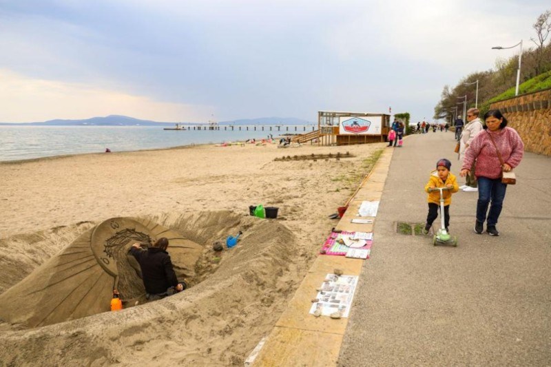 На Великден на централния плаж в Бургас може да се види пясъчна фигура на Иисус Христос