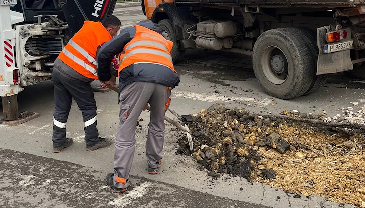 През първата половина на деня служители на Общинско предприятие „Комунални дейности“ са отстранявали деформации по пътните платна на улиците „Проф. Баларев“, „Борислав“, „Константин Иречек“, „Пристанищна“, „Тунджа“, „Рига“, както и по булевардите „България“ и „Славянски“.