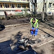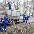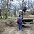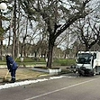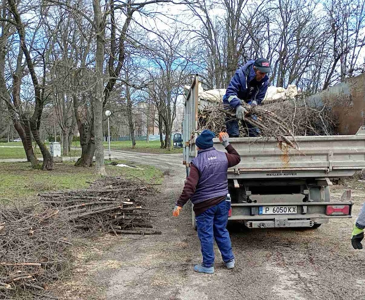 В Парка на младежта работници на Общинско предприятие „Паркстрой“ събират паднали клони и метат алеите, като едновременно с това реагират и на подадени граждански сигнали на телефон 112.