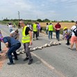 Работници от АПИ строят барикада на пътя към Дунав мост 2