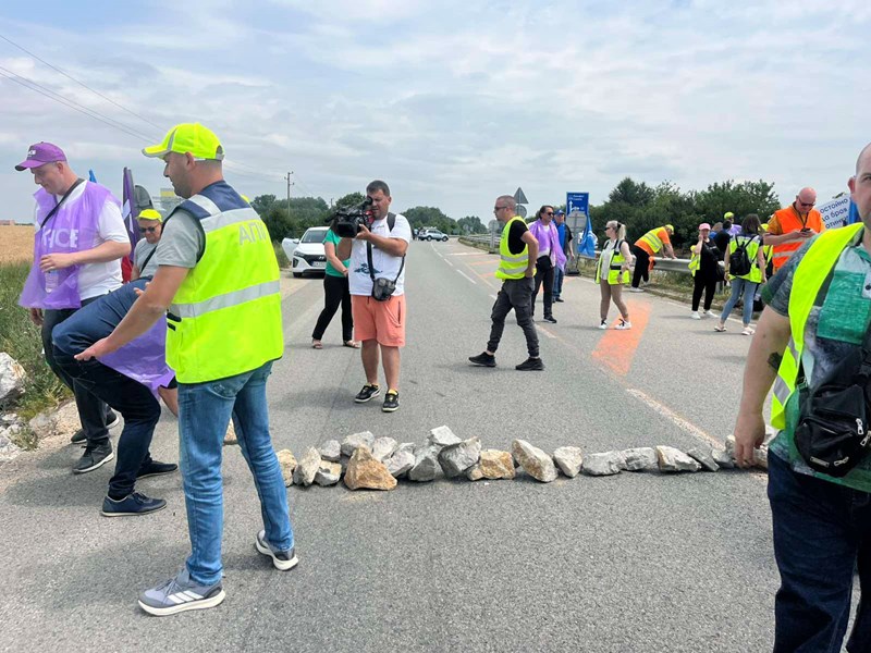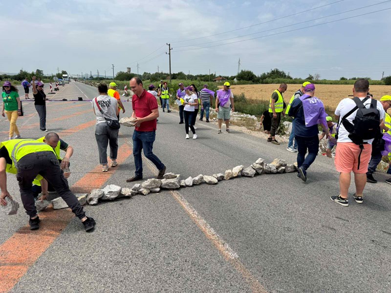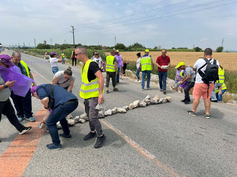 Работници и служители от Агенция "Пътна инфраструктура" от цялата страна блокираха днес в 12:00 часа път Е-79 по посока „Дунав мост 2" при пътен възел „Ново село". Протестиращите настояват за минимум 10-процентно увеличение на възнагражденията им и заявяват, че няма да отворят блокадата, докато исканията им не бъдат удовлетворени.