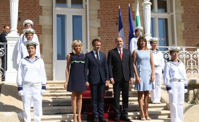 Двамата държавни глави са придружени от съпругите си Десислава Радева и Брижит Макрон, пише Нова телевизия.