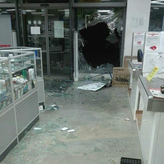 Крадци потрошиха с брадви една от витрините на магазин на голяма верига за бяла, черна и офис техника в Ботевград и го обраха, предаде dir.bg.
