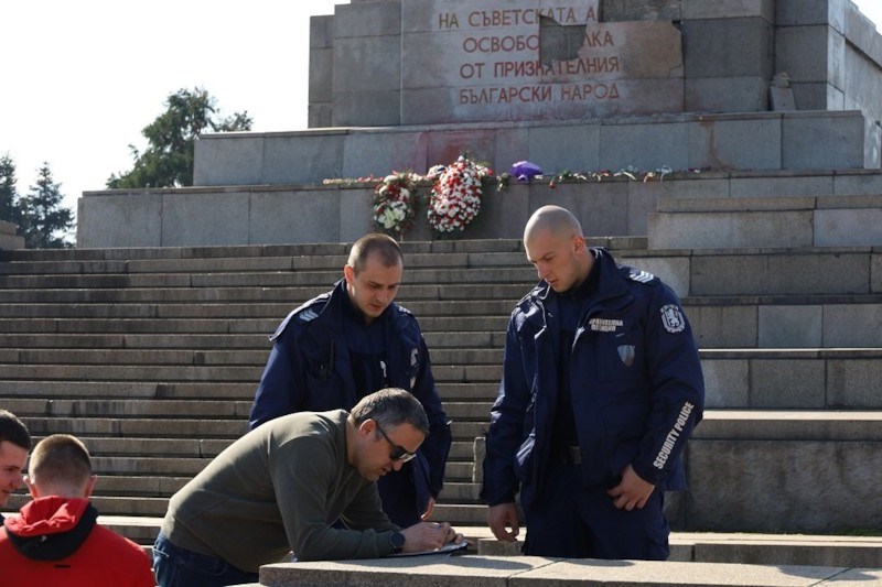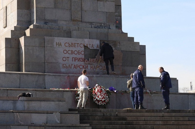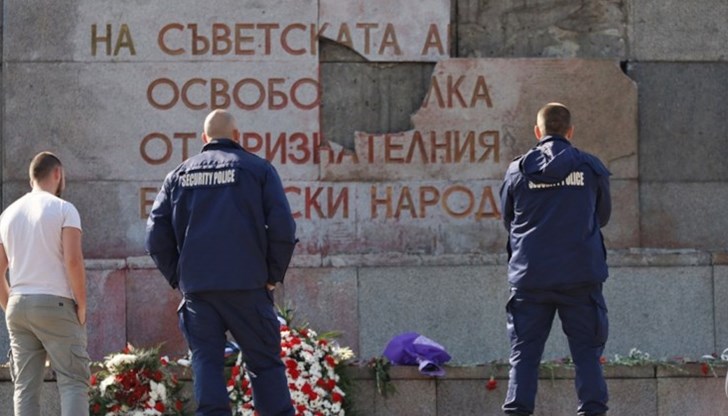 Плочата на Паметника на Съветската армия в София, на която пише „На съветската армия освободителка от признателния български народ“, е разбита.