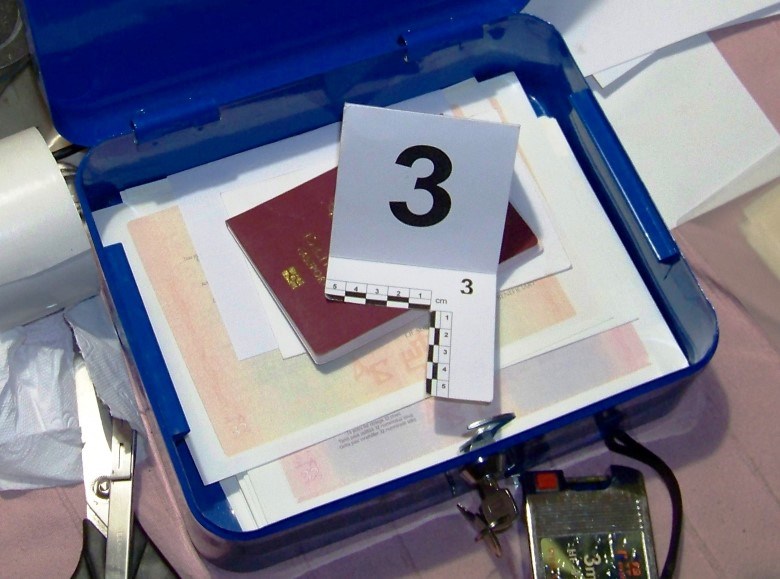 При извършения първоначален оглед документите, по последен образец били трудно различими от истински. Последвало претърсване в имоти в Шумен и село край града, ползвани от 33-годишния шуменец. Намерени били множество документи за самоличност – български и чужди, заготовки за документи за самоличност в различна степен на завършеност. В помещение от апартамента обособено като "паспортно бюро“ е открита техника за предпечат, печат и производство на неистински документи за самоличност. Намерени са над 100 бели на цвят пластики, подготвени за производство на лични карти и свидетелства за управление на моторни превозни средства, матрица, бои, мастила. Иззети са три компютърни конфигурации, шест принтера, гравираща машина, иглен плотер, ламинатор, инструменти за фина техника, термоламиниращи фолиа с релефни мотиви и кинеографски елементи.