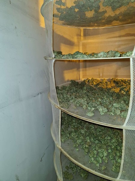 От помещението са иззети 115 саксии с канабисови растения, с височина от 25 до 100 см, около 45 килограма сухи съцветия, разпределени в 11 чувала, други пет чувала, съдържащи зелена тревиста маса и съцветия, както и оборудване за производството и последващата обработка на наркотичното вещество.